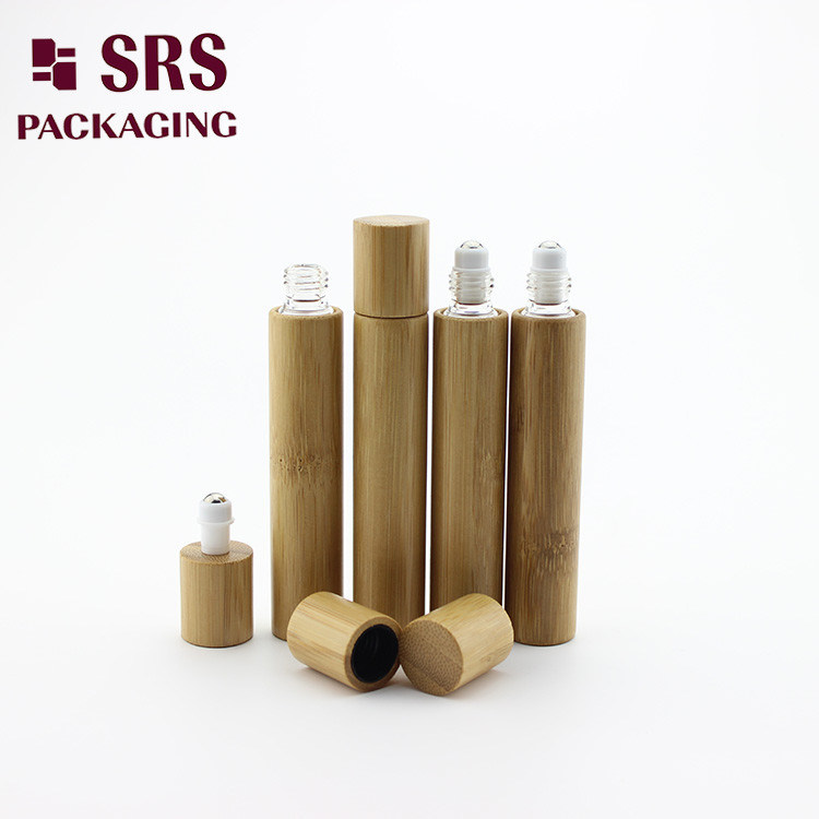 Frasco roll-on de vidro de bambu, o frasco externo é de bambu real, o frasco interno é de vidro: