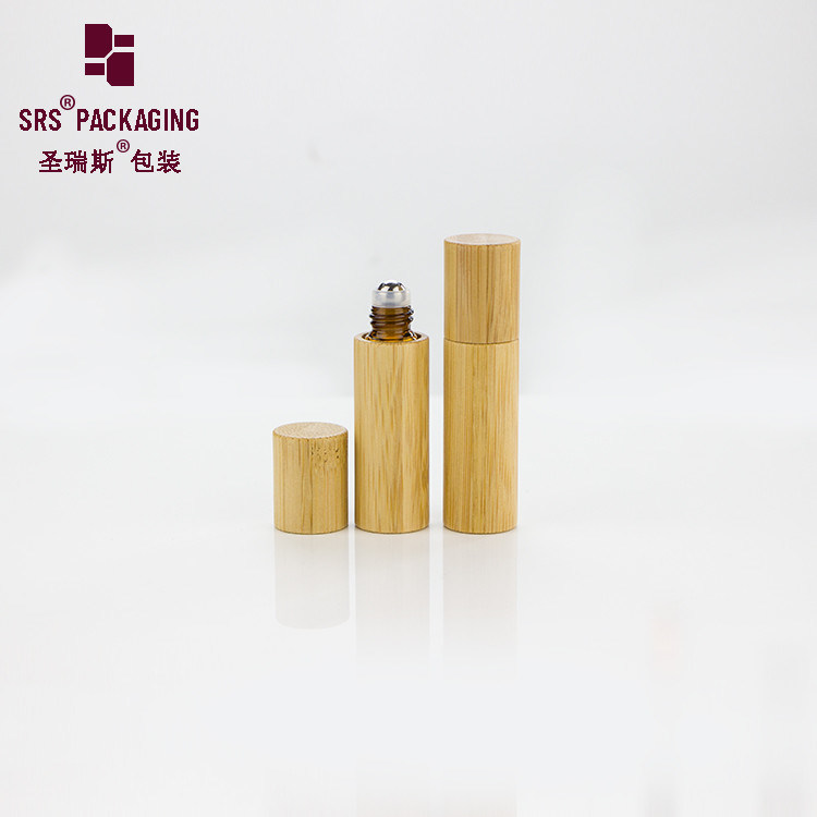 Frasco roll-on de vidro de bambu, o frasco externo é de bambu real, o frasco interno é de vidro: